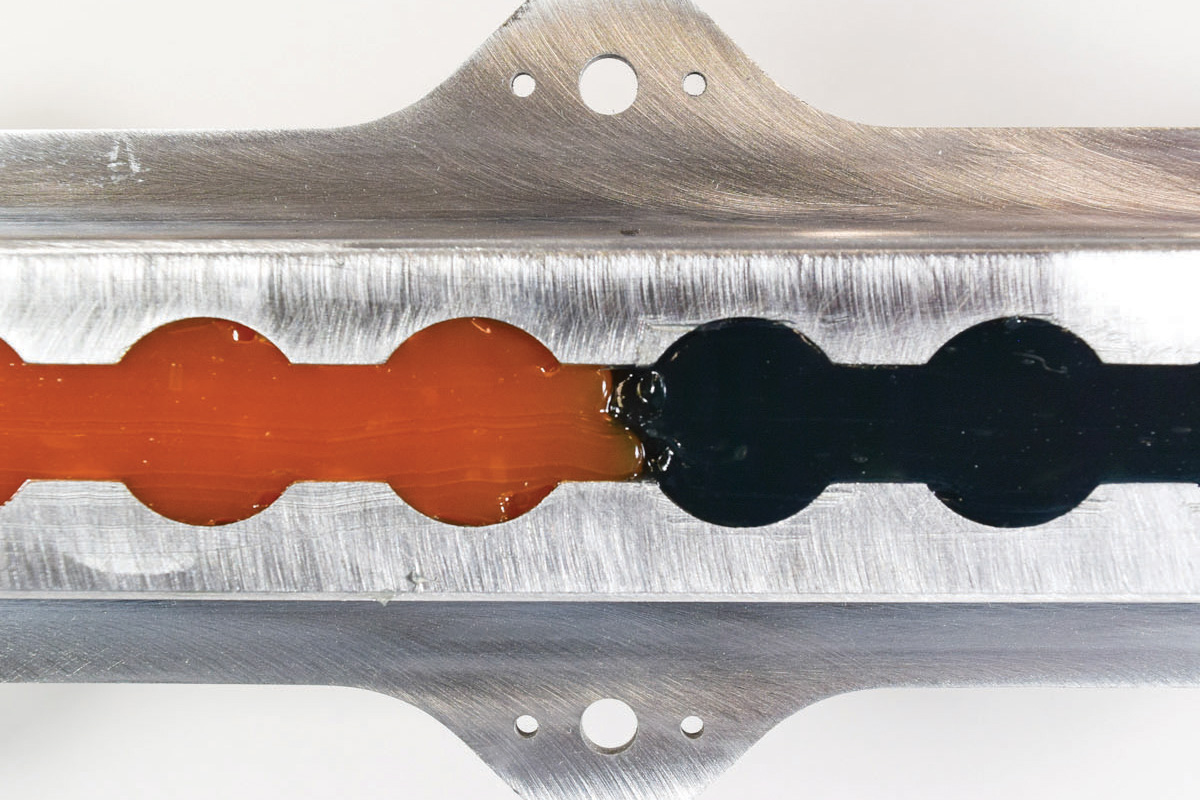 Av-DEC selection of two-part corrosion-inhibiting injectable sealants offers more options than other competing injectable sealants. The Thixoflex Orange and Thixoflex Gray formulas are thixotropic sealants that can fill cracks, cavities, and joints to waterproof an assembly and prevent corrosion. When applied, the sealant forms a semi-solid state which makes it applicable on vertical and overhead surfaces, unlike other sealing options. The benefits gained from using Av-DEC thixotropic sealing formulas include: